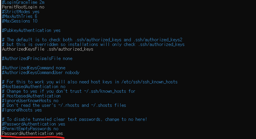PasswordAuthentication yes๋ก ์ค์ ํด์ฃผ์